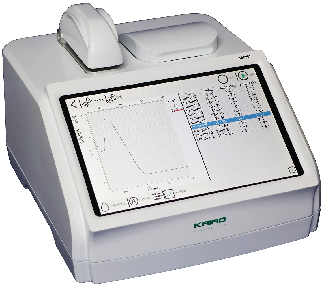 比色皿(10mm):0.2~80 ng/µl (dsDNA);0.006~2.38mg/ml(BSA);